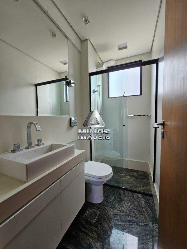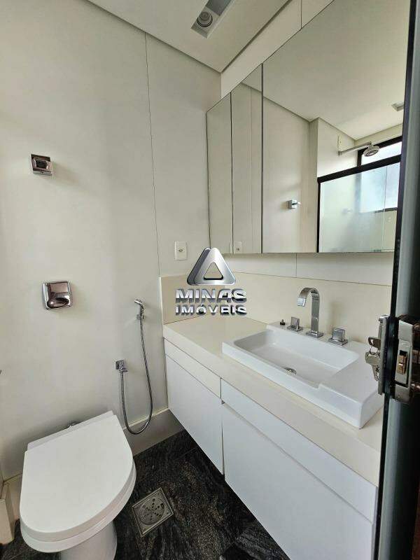 - Banheiro social com armários, box e espelhos